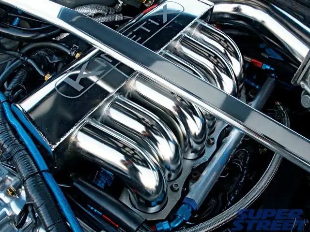 Бруно, в течение нескольких лет работавший в качестве специалиста по аудиотехнике в Rockford Fosgate, привык строить идеальные авто с точки зрения звукового наполнения нежели с точки зрения ходовых характеристик. Тем не менее он точно знал, что для его VQ нужен такой твин-турбо-кит, который он видел на «фашке». Бруно не просто воткнул турбо-кит в мотор, чтобы посмотреть, что будет дальше, а подготовил его под большие нагрузки, полностью заменив стоковые агрегаты усиленными. В UMS Tuning сочли, что с шатунами A-Beam будут отлично работать стоковые увеличенные поршни и поршневые кольца СР. Коленвал оставили стоковый, а головку блока цилиндров после сборки расточили и отполировали. Воздух к двигателю с возросшим аппетитом поступает через воздушные фильтры Greddy и впускной коллектор Kinetix Racing из нержавеющей стали.