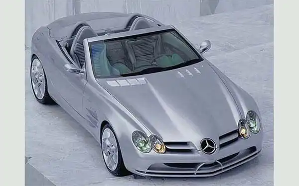 Mercedes-Benz SLR McLaren Roadster. Шикарный родстер со складочным верхом от Mercedes ручной сборки. Чтобы владеть таким автомобилем, нужно иметь под рукой лишние полмиллиона евро. Совместная разработка инженеров Mercedes и их партнеров по "Формуле - 1" гоночной команды McLaren. В этой машине вы сможете спокойно беседовать со своим пассажиром при открытом верхе на скорости в 150 км/ч. А разгоняется родстер до 332 км/ч.