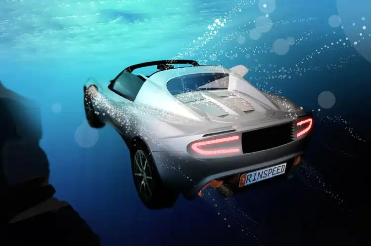 Первые разработки этого уникального в своем роде автомобиля появятся уже к автосалону в Женеве в следующем году. А уникальность Rinspeed sQuba заключается в том, что он сможет плавать под водой, да именно как подводная лодка Кузов авто выполнен в виде кабрио, но водитель и пассажир смогут дышать под водой с помощью специальных кислородных масок, подключенных к баллонам с воздухом. Все приборы sQuba сделаны из водонепроницаемого материала и их количество сведено к минимуму. По суше концепт будет передвигаться с помощью мощного электродвигателя, а для подводного перемещения предусмотрено два в задней части авто и два водомета, расположенных перед дверями. Rinspeed сможет с легкостью маневрировать под водой, так как потов из турбин регулируется в нужном направлении. Забавно было бы поплавать на таком концепте, но главное не забывать, что на нем нельзя погружаться более чем на 10 метров