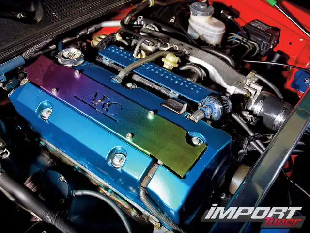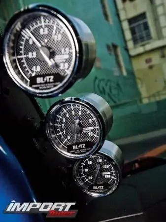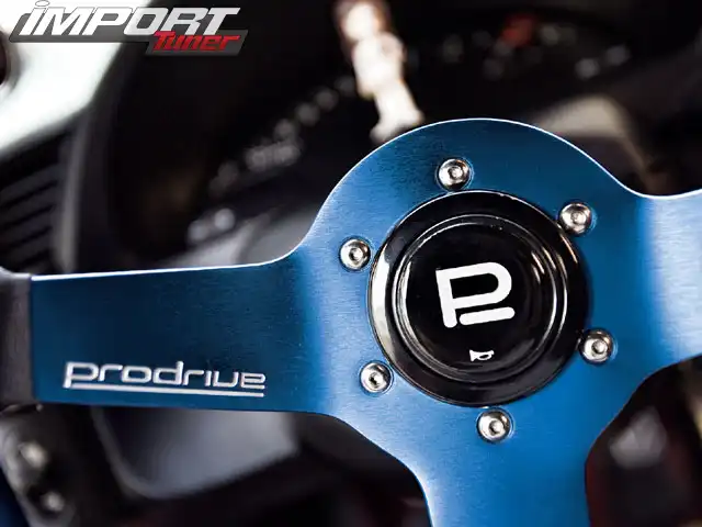 Еще одна причина симпатизировать этой машине — отсутствие задних сидений. Большинство «хондоводов», с которыми я обычно общаюсь, постепенно приходят к выводу о бесполезности задних сидений. Так почему бы вовсе от них не отказаться? К тому же, отсутствие задних сидений акцентирует внимание на передних, где, в случае с Брайаном, прописались кевларовые ковши Bride Gias Low Max. Ремни безопасности, предоставленные для этого проекта Томми из Go Tuning Unltd., крепко держат водителя, будучи, в свою очередь, прикрепленными к 6-точечному каркасу безопасности Cusco, вещи крайне необходимой в столь «горячей» машинке с мягким верхом. Напротив сидений удачно устроились руль Prodrive и ряд датчиков Blitz, информирующих о давлении буста, температуре воды и давлении масла. Заключительный штрих в оформлении интерьера тачки — титановая ручка КПП ARC и чехол Mugen.