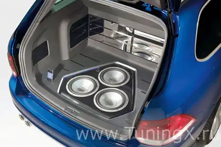 Конечно, здесь же представлены разные варианты доработки популярной модели Golf. Сам Volkswagen прикатил на шоу модель Golg GTI-Variant с названием RaVe 270. Цифра "270" означает количество лошадиных сил, но главная изюминка в другом – в машине установлена музыкальная установка мощностью 1400 ватт.
