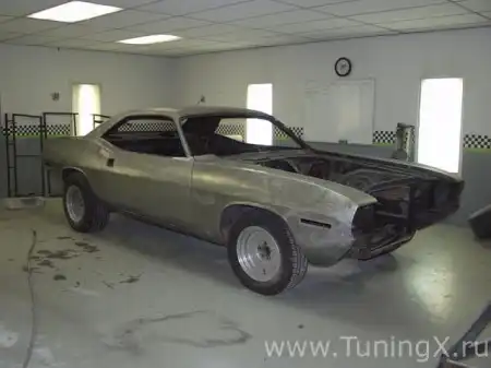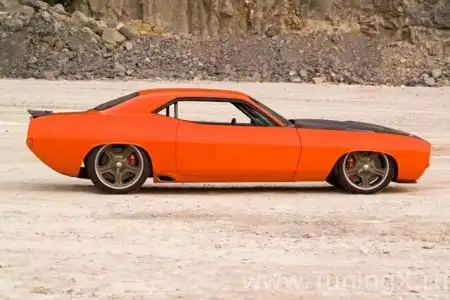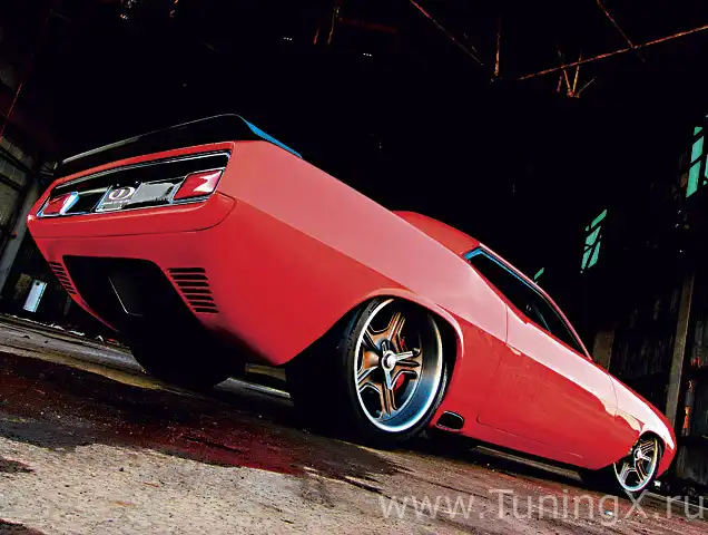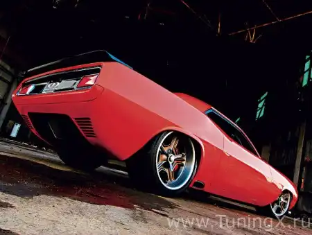 Обули «рыбку» в олд-скульные диски с одним болтом от Colorado Custom размерностью 19?10 спереди и 20?12 сзади. На диски натянули покрышки Michelin PS2 Ultra High Performance размером 295/30-19 спереди и 335/30-20 сзади соответственно. В салоне полный кастом, родного ничего не осталось — сидишь, как в современном суперкаре, но это уже не удивляет, а скорее стало нормой для подобных G-машин. Для завершение облика новой Barracuda было изготовлено несколько новых карбоновых деталей: капот, передний спойлер под бампер и задний спойлер на багажнике. В рамках знаменитой американской выставки SEMA 2005, хищная «рыбка» Алана отхватила премию «Лучший Хот Род», учрежденную компанией SONY в поддержку игры Gran Turismo. В том же 2005 году Plymouth Cuda получила еще пару премий: Mothers Choice Award и Daimler Chrysler Design Excellence Award, а через год забрала GoodGuys Street Machine of the Year Award. Ну и в начале 2007 года на знаменитом аукционе Barrett-Jackson «рыбина» ушла с молотка за 535 000 долларов, слихвой окупив затраты Алана и принеся даже немного зеленых баксиков в карман трудоголика из Johnson’s Hot Rod Shop.