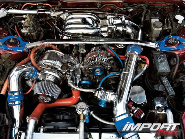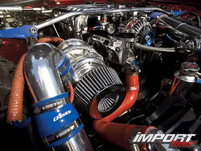 Родригез относится к тем людям, которые выставляют свою любовь к тачке напоказ. Только взгляните на турбину, выставленную под капотом на всеобщее обозрение, которая, по его словам, может «высосать мозг из мозговой косточки». Но его RX-7 отличается от других не только правильным охлаждением. Без должной обработки звук ее выхлопа просто оглушает — услышав такой на улице, вы сразу будто оказываетесь на линии пит-стопа одной из трасс IMSA (International Motor Sport Association — Международная ассоциация мотоспорта). Послушав ничем не приглушенный звук RX-7 в мастерской Сая, Родригез решил к 3,5-мм титановому выпуску GReddy добавить шумоглушитель Magnaflow.