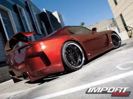 Закончив с начинкой, Родригез решил, что его машина должна отличаться от 10 других RX-7, встреченных на трассе. Если обычные граждане идут по пути «боди-кит, диски, резина», то Родригез, думая о перспективах, заказал обвес VeilSide Fortune и диски Work VSXX шириной где-то дюймов 8.