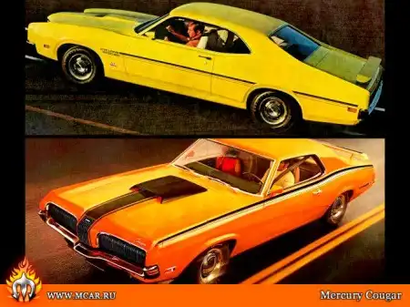 Mercury Cougar позиционировалась как более роскошная версия Mustang: интересный внешний вид, богатая отделка салона, дополнительные опции для комфорта и удлинённая колёсная база. Первоначально был доступен кузов хардтоп с ковшеобразными сиденьями, скрытыми фарами и широким выбором двигателей V8: от 289-го, мощностью 195 сил до 390-кубового, развивающего 335 л.с. Люксовый пакет XR-7 включал стильный руль, отделанный деревом, кожаные сидения, Т-образную ручку АКПП, затянутую в натуральную кожу и чёрную переднюю решётку. За 323 доллара можно было приобрести версию GT — спортивный пакет опций, включавший более устойчивую подвеску, стабилизатор поперечной устойчивости, передние дисковые тормоза, выпускную систему пониженного сопротивления и шильдики. Базовым мотором для GT-пакета был 390-кубовый V8 мощностью 335 сил с гидравлическими подъёмниками и распределительным клапаном «уличного типа» с отношением мощности к весу 1:10.
