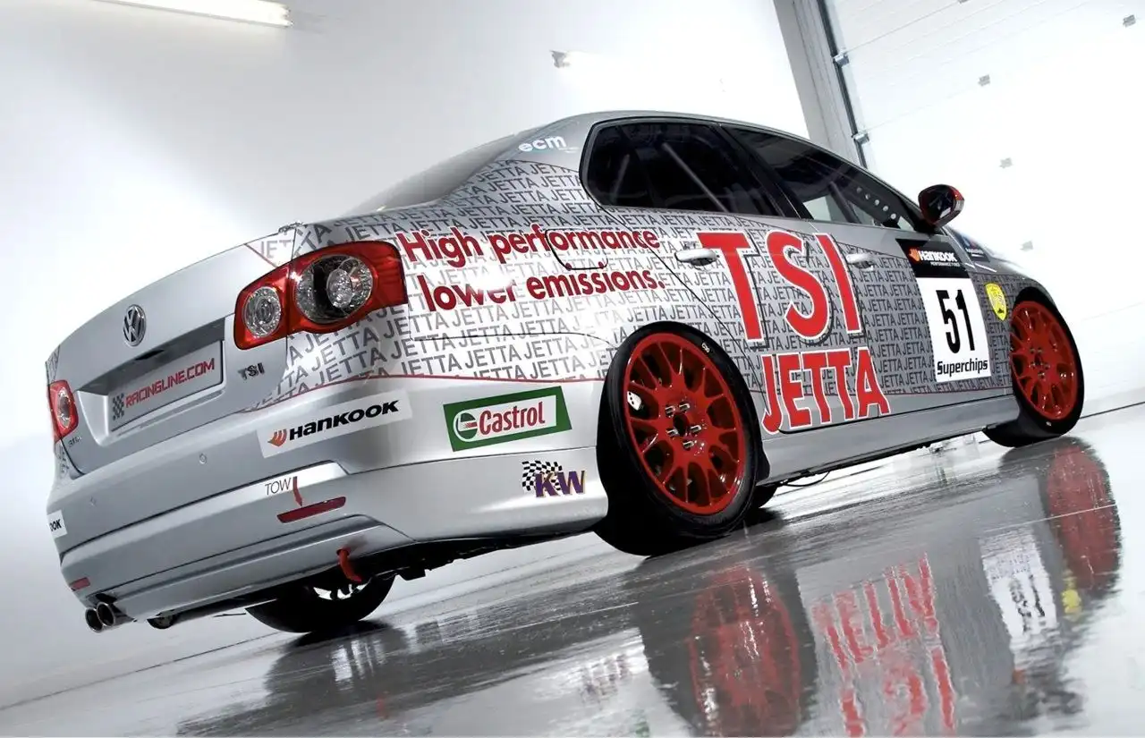 Volkswagen на международной автоспортивной выставке в Бирмингеме сегодня представил гоночную версию VW Jetta TSI Sport. Инженерам компании удалось поднять мощность 1.4 литрового 16-клапанного мотора со 170 до 230 лошадиных сил. Мотор оснащается одновременно и нагнетателем и турбиной - за счет этого удалось избавиться от турбоямы и получить достойный момент во всем диапазоне оборотов. Новая Jetta будет участвовать в Volkswagen Racing Cup.