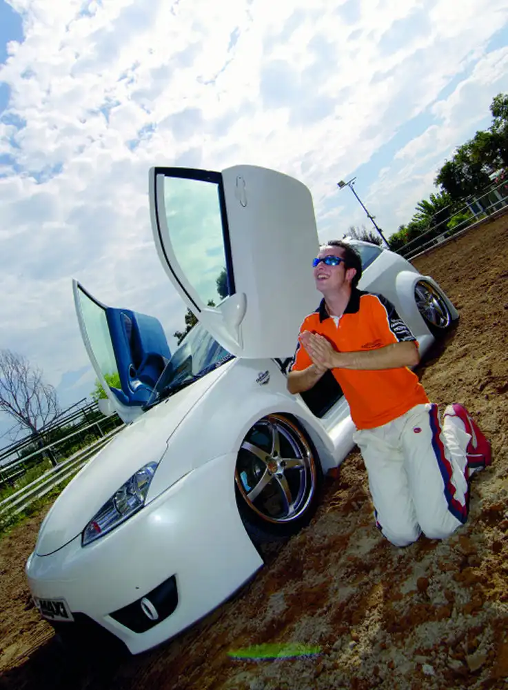 Перво-наперво, белоснежного скакуна, конечно же, подковали нарядными 19-дюймовыми колесами. С такими катками он сможет обращать на себя внимание лошадок помоложе... Следующим делом было научить коня приседать перед наездником для облегчения посадки. Для этого тачку отогнали в Барселону, где умелые мужчины из ателье Lowered выверенными движениями установили на Ford пневмоподвеску. Причем, они серъезно поработали с местами креплений элементов подвески, переделав их таким образом, что Focus мог теперь упасть ниц, полноценно брякнув брюхом об асфальт. Впрочем, с нулевым клиренсом не рекомендуется рассекать даже по льду хоккейного катка.