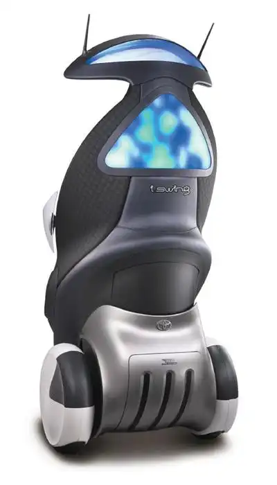i-swing – кресло, пригодное для езды не только по дому и офису. Управляется оно джойстиками и педалями. Как и обычный стул, i-swing обшит тканью, которая несет не только эстетическую функцию, но и защищает других участников движения, ведь ездить на i-swing придется по обычным тротуарам. Вещица не для МКАДа…