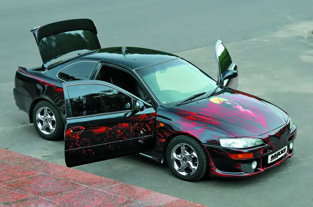 Тачка бралась исключительно под индивидуальный тюнинг и, спустя пару месяцев, уже начались доработки. Пройдя несколько стадий, Toyota стала обретать окончательные черты, которые ты видишь на фото. В Москве по скетчам хозяина слепили передний бампер, пороги и решетку радиатора. Кроме того, был подписан контракт с компанией МОМО, решившей сделать на базе авто демо-кар. Так в салоне оказались кожаные ковши, баранка, рычаг КПП, ручника и другие полезные и приятные девайсы от известного производителя. В тачке появилась серьезная акустика, опять же от МОМО. Но всего этого оказалось владельцу мало, и он решил построить то, чего еще ни у кого нет. Желание вроде бы нехитрое, но мало кому удается воплотить его в жизнь…