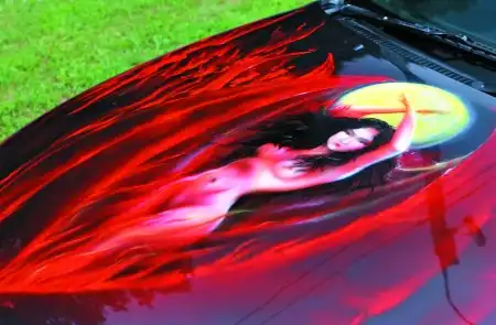 Что можно сказать о человеке, украсившем свою машину такой дьявольской аэрографией? Он полностью соответствует выбранному имиджу: носит темные очки, очередную годовщину отношений со своей девушкой, дату которой парочка забыла, он празднует в день Хелоуина, а раньше занимался черным пиаром.