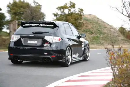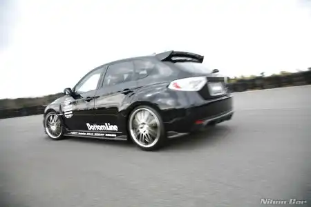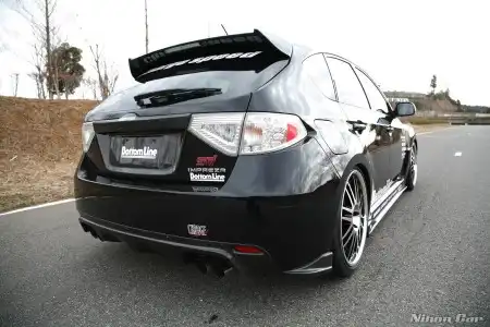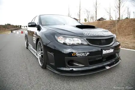 Данная Impreza побывала в руках Charge Speed. Ей достался ориг. бодикит "Bottom Line" - думаю фото дают о нем полное представление, так же машина примерила новую обувь от Dunlop Direzza DZ101 размерности 235/35 смонтированную на дисках RacingHart RS451 Machine Black R19.