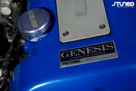 Двигатель GENESIS соединен с выпускным коллектором Sports EX от SARD и турбокомпрессором Tomei. Вместе они выдают 450 лошадей. Раскаленные выхлопные газы проходят через даун-пайп от RS-R и выводятся через легкую титановую выхлопную трубу GT-Ti. Компьютер Auto Produce Boss Special регулирует топливную смесь. Регулятор наддува Blitz контролирует давление потоков холодного воздуха, идущих от интеркуллера к двигателю.