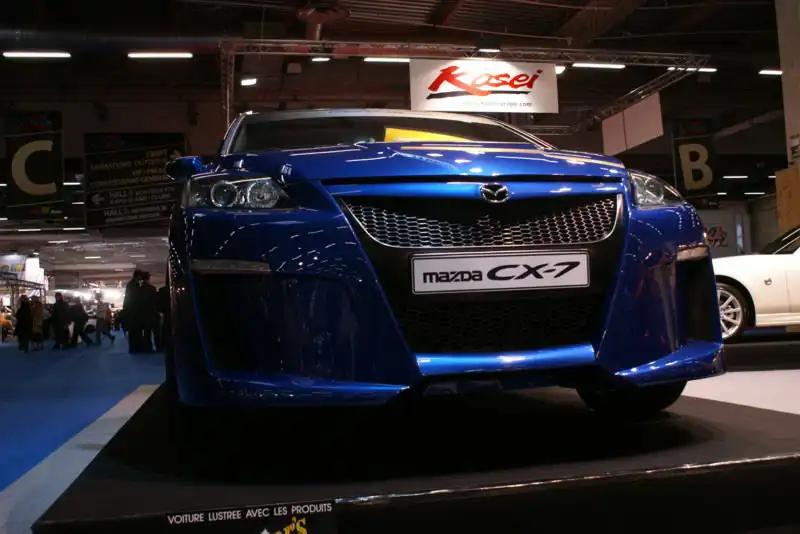 Parotech базируется во Франции и здесь же продает львиную долю своей продукции – логично, что самые долгожданные и востребованные новинки компания «засвечивает» именно на парижском шоу. Конкуренты не отстают – ежегодно два-три новейших обвеса демонстрирует популярная среди французской молодежи марка МТК. В этом году ведущий дизайнер компании Филипп Меттель представил публике бодикиты Kit Rosso для Fiat Grande Punto и пока не имеющий названия обвес для Mazda CX-7. Причем наибольший резонанс вызвал как раз обвес для японского кроссовера. Причин можно назвать сразу несколько. Модель дебютировала сравнительно недавно, и Меттель – чуть ли не первый дизайнер, успевший нарисовать для нее новые пороги и бамперы. Экспонируется автомобиль на стенде французского представительства Mazda, что свидетельствует об оказанном МТК высоком доверии и отнюдь не равнодушном отношении производителя к тюнингу. Вдобавок посаженный на 50 мм ниже и обутый в 22-дюймовые колеса с низкопрофильной резиной CX-7 выглядит настоящим асфальтовым пижоном и заставляет забыть рекламные ролики с ездой по лишенной дорог пустыне.