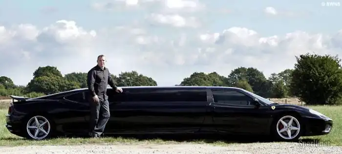 Изобрёл владелец автомобиля Феррари Dan Cawley. Он распилил свою Ferrari 360 Modena надвое, удлинил её и получилось то, что получилось. А я вот не завидую тем, кто в салоне с бокалом шампусика, резкое торможение и они в кабине водителя всей толпой. Ведь скорость в 170 миль в час не такая уж и маленькая.