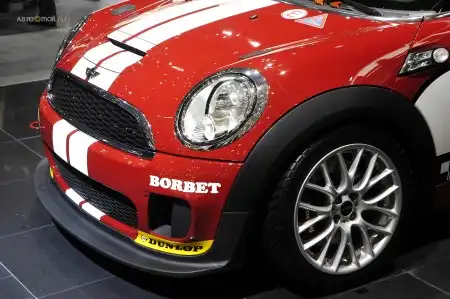 От стандартных Mini здесь вообще мало чего осталось. «Боевой» автомобиль получит другую подвеску, усиленные тормоза, доработанную коробку передач и, разумеется, более мощный мотор. Он имеет объем 1,6 л, но благодаря турбонаддуву выдает аж 220 л.с.