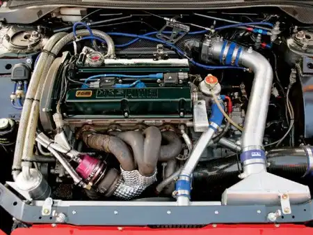 Под капотом Evo VIII уютно расположился двигатель HKS 63L (4G63) объемом 2,3 литра. Мотор этот сконструирован с применением технологии MIVEC, также известной, как инновационная электронная система контроля момента открытия и закрытия клапана от компании Mitsubishi Motors с встроенной системой HKS Valcon – аналогом системы VTEC для автомобилей, которые не были оснащены данной системой в заводской комплектации. Также, инженеры компании HKS оснастили Mitsubishi Lancer Evolution VIII турбокомпрессором HKS GT3037S с перепускным клапаном GTII. В двигателе установлен распредвал 272 серии, кованные поршни с никелевым покрытием. Кованый коленвал, который стоит в данном EVO, на момент создания машины еще не поступил в продажу и находился в стадии разработки.