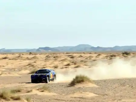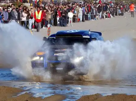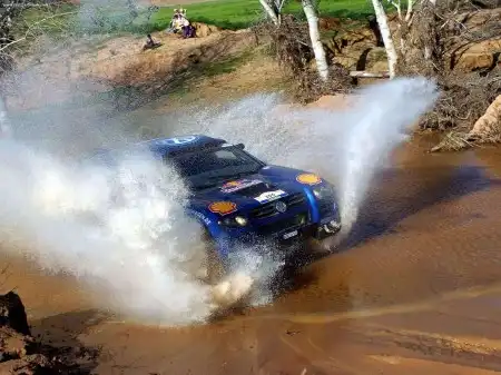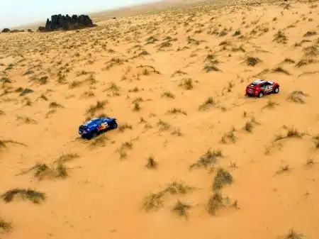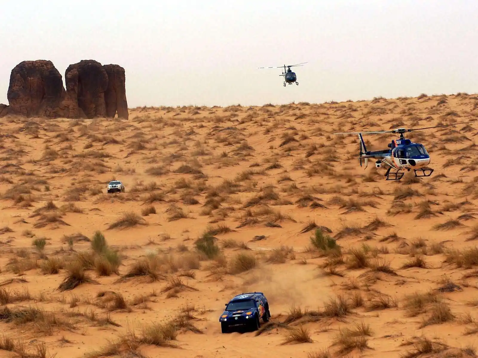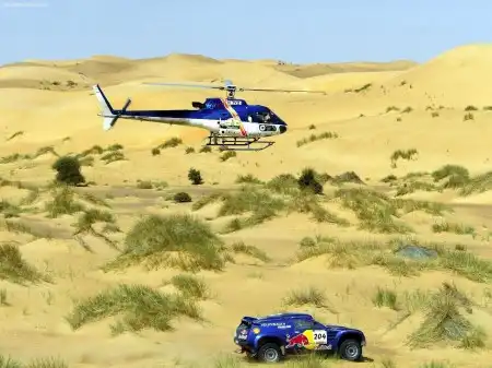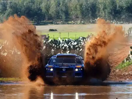 Но полет рано или поздно заканчивается, и тогда в дело вступает подвеска. Дакаровский регламент довольно жестко ограничивает ее ход: 250 мм — не слишком много для таких суровых дорожных условий. Поэтому особую важность приобретает подбор характеристик упругих и гасящих элементов. А также надежность — ведь именно подвеске достается больше всего на марафонских спецучастках. Известны случаи, когда посреди пустыни из-за потери герметичности и возгорания перегретой амортизаторной жидкости сгорала вся машина. Чтобы избежать этого, Race-Touareg, как и большинство конкурентов, имеет по две пружинно-амортизаторных стойки на колесо. Кинематическая схема подвески — двухрычажная, спереди и сзади.