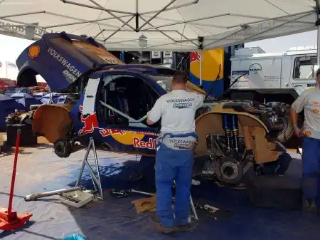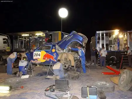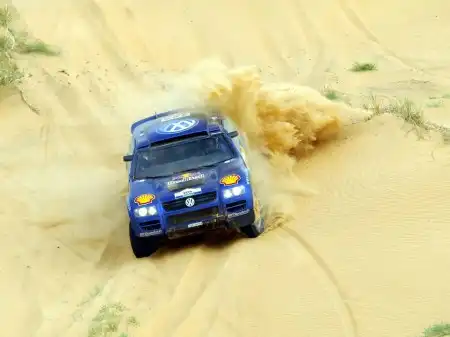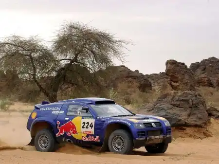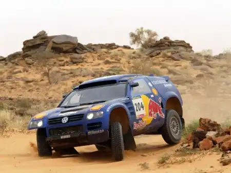 Ни для кого не секрет, что с одноименным серийным джипом дакаровский Race-Touareg роднят лишь общие контуры двухдверного кевларового кузова. Под ними — традиционная для ралли-марафонов конструкция, несущим элементом которой является пространственная рама из высокопрочной авиационной стали. К ней крепятся все узлы и агрегаты, подвеска и детали обшивки, она же выполняет функции каркаса безопасности. Вес рамы всего 300 кг.