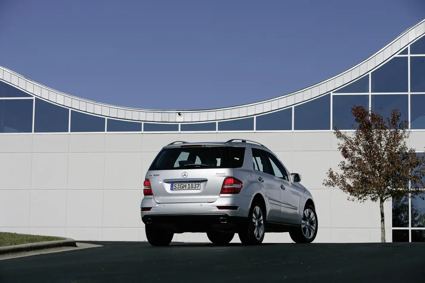 В отделке интерьера появились новые материалы, а так же новое рулевое колесо. На заказ доступна аудио система Harman Kardon® Logic7® мощностью 610W, для задний пассажиров так же доступен LCD монитор 8« с DVD плеером. Под капотом двигатели V6 и V8 (от 190 до 388лс.), в паре с которыми 7ст. автомат 7G-Tronic. Для еще большей безопасности пассажиров SUV оснащается теперь системами — PRE-SAFE® и NECK-PRO. Выше рангом модель AMG ML63, о ней позже.