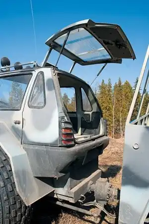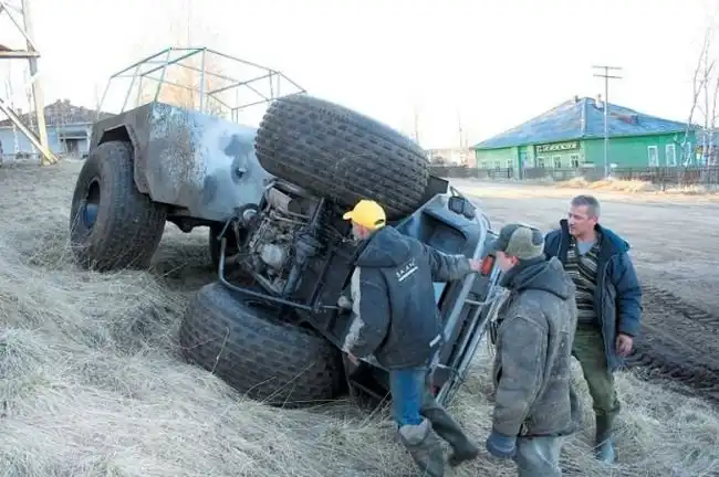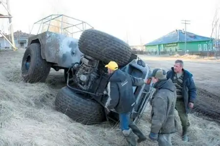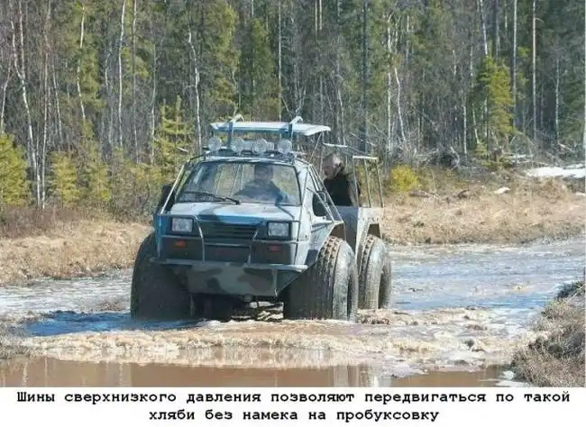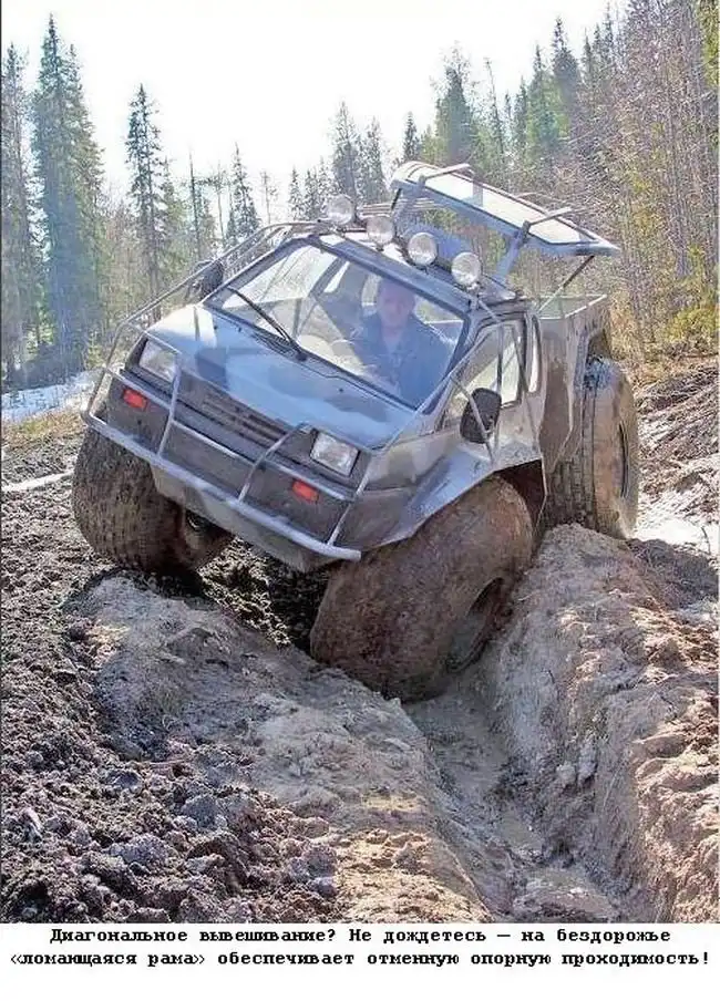 Русский автопром, удар по бездорожью. Подход логичен и прост, берем что-нибудь легкое и дешевое и ставим на большие колеса. немного фантазии и смекалки и мы получаем(...и брюки превращаются...)то что получаем:)) Лесникам и егерям в помощь.