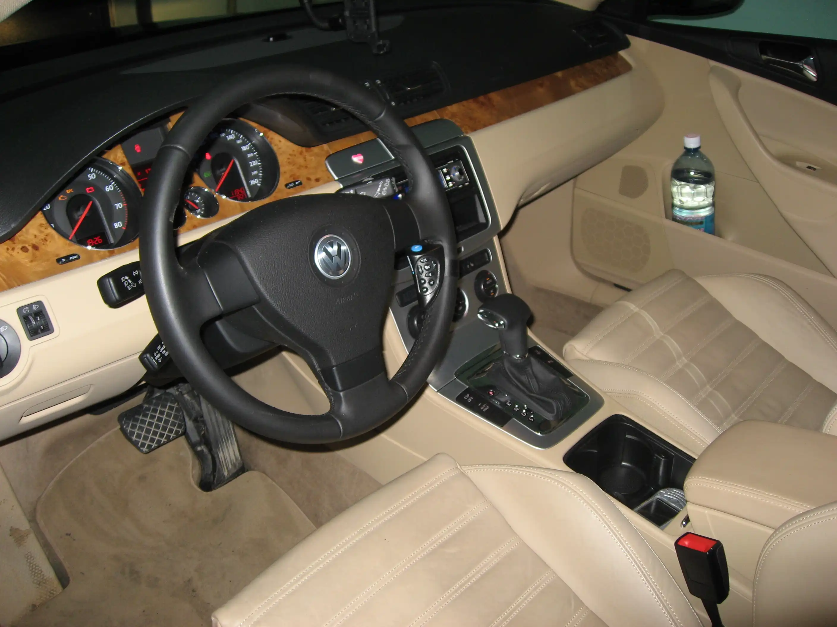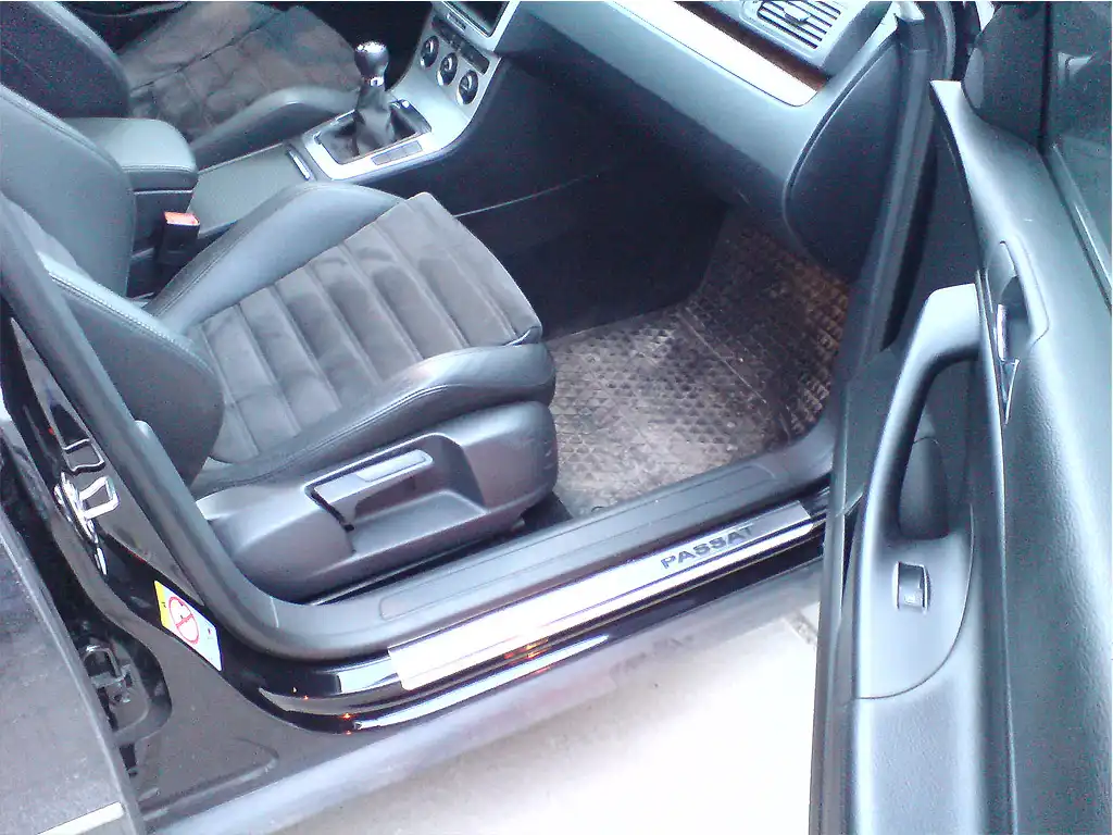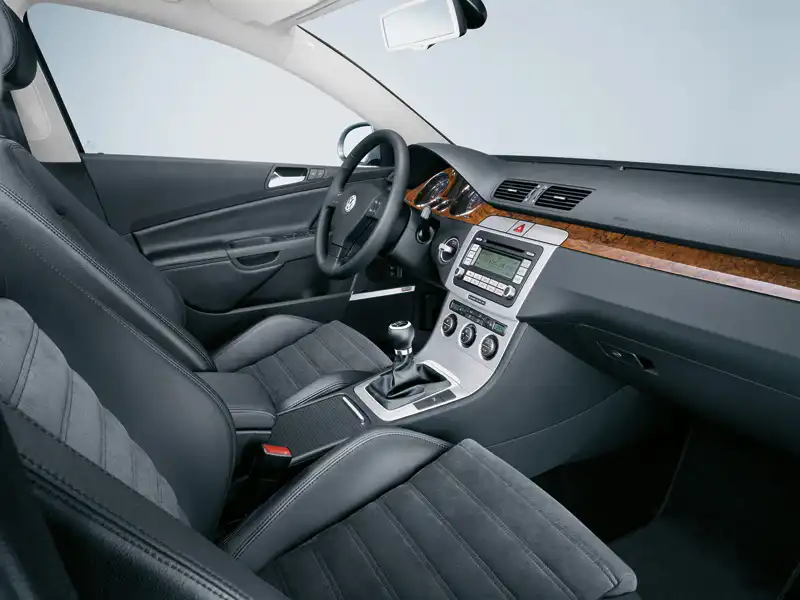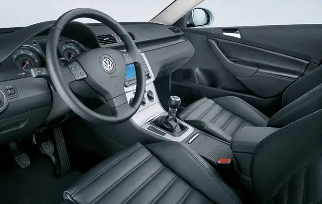 В интерьере и эргономике салона все продумано до мелочей - нет лишних, неудобных функций и предметов, а о каком-либо минимализме и речи быть не может. «Голая» машина в комплектации «Trendline» впечатляет: светодиодные стоп-сигналы, задние габариты, боковые и задние указатели, кондиционер «Climatic», а также ESP (включая экстренный двухстадийный усилитель торможения (EBA), ABS, EBD, электронную блокировку дифференциала (EDL) и антипробуксовочную систему (ASR/MSR)). Еще одна немаловажная деталь – теперь все Passat`ы запускаются без ключа зажигания. Передатчик, используемый для отпирания и запирания центрального замка, почти до конца вставляется в держатель, расположенный справа от рулевого колеса – электронный замок зажигания (EZS). После этого одним нажатием можно запустить двигатель при помощи простой кнопки Kessy (Keyless-Entry-Start-and-Exit-System).