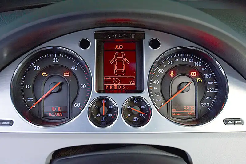 И вот тут началось веселье. Логично предположить, что новейшие двигатели FSI, с которых немцы научились снимать недоступное ранее количество лошадиных сил, должны без проблем тянуть Volkswagen Passat в любой комплектации. Но, хотя под капотом в 2-х литровом FSI и спрятаны 150 «лошадей», динамика разгона машины не впечатляет. Тот же движок, что прекрасно «тянет» Audi, в Passat`е слегка «тормозит». Скорее всего, дело тут в шестиступенчатой автоматической трансмиссии Tiptronic, которая обеспечивает отличную плавность хода, почти сразу добираясь до 6-й передачи, где начинается набор скорости. В ручном режиме секвентального Tiptronic можно чуть лучше контролировать двигатель и раскручивать его до 5000 оборотов, тяга в таком случае становится получше, но и шума побольше. И потом, зачем, покупать автомат для того, чтобы ездить в ручном режиме?