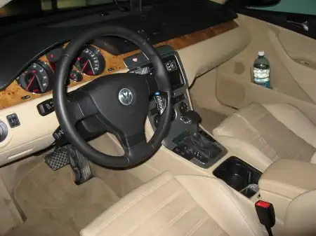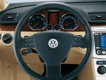 Что касается интерьера автомобиля, то и здесь всё было продумано по максимуму: кожаные кресла с плотными, поперечно прошитыми велюровыми вставками, двери и торпедо, отделанные качественным светлым пластиком, натуральное дерево, использованное для оформления центральной панели – дизайн салона просто идеален. К тому же у Passat`a есть круиз-контроль и полноценный бортовой компьютер, для изучения всех функций которого счастливому владельцу нужно провести не один час за руководством по эксплуатации. Для автомобиля в максимальной комплектации вполне естественно наличие полного электропакета с четырьмя стеклоподъемниками, регулировкой боковых зеркал и положения кресел. Причем водительское кресло имеет память на три регистра: если автомобилем управляет несколько людей, им нужно просто договорится, кто какую кнопку резервирует для себя - и при посадке в машину сидение автоматически примет индивидуально удобное положение.