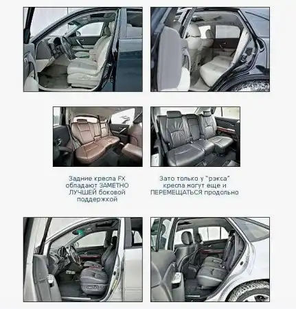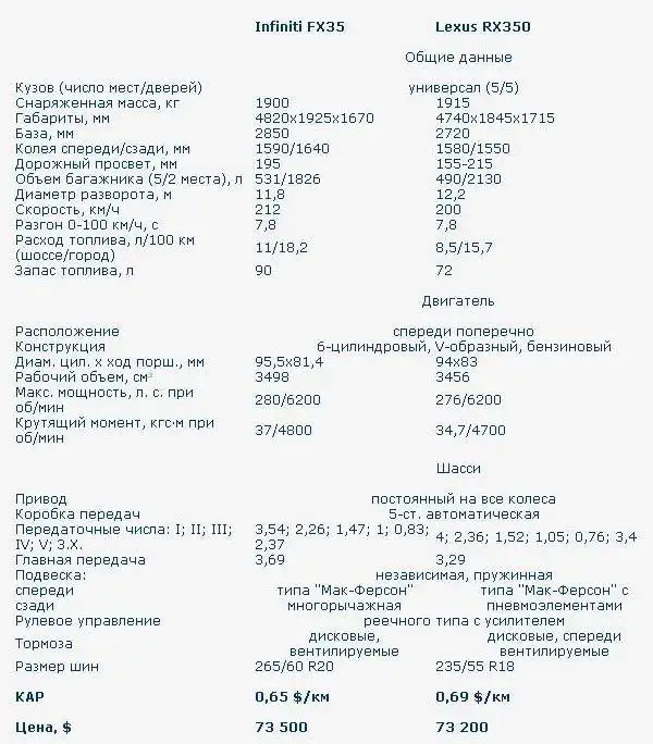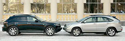 В тесте участвуют автомобили: Infiniti FX, Lexus RX