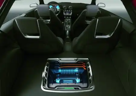 Естественно, в первую очередь обращает на себя внимание приписка quattro в названии концепта. Тут-то и кроется главная новость – спецы Audi всерьез занялись «озеленением» машины, и полный привод на модели… гибридный. Выглядит это так – 1,4-литровый двигатель TFSI мощностью 150 л.с., приводит в движение передние, а электромотор мощностью 30 кВт, соответственно, задние колеса. Шутка ли – при ускорении электротяга может передавать на задние колеса до 200 Нм крутящего момента! Полюбоваться на литиево-ионные батареи электрического «сердца» можно через окошко в полу багажника. Впрочем, доживет ли все это великолепие до серийного образца – еще вопрос.