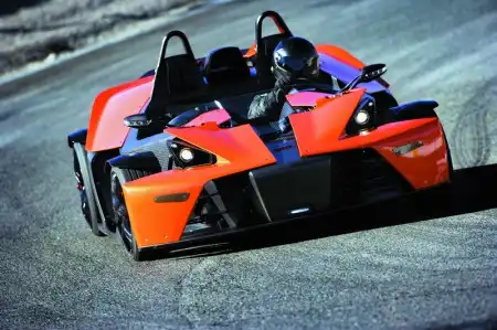 Несмотря на отсутствие всех упомянутых «мелочей», первый автомобиль КТМ высокотехнологичен. Недаром он построен при поддержке столпов автопрома – Audi и Dallara. Силовая структура кузова – карбоновый монокок, который до того был привилегией суперкаров. Итальянцы из Dallara потрудились на славу: вес монокока всего 70 кг – во многом отсюда горячий темперамент этого омологированного для дорог общего пользования болида. Audi же предоставила 2-литровый турбомотор TFSI, развивающий 220 л.с. при 5900 об/мин и 300 Нм крутящего момента при 2200–4000 об/мин. Немцы обещали КТМ довести мощность до 300 сил для некоторых версий X-Bow. Кстати, с таким мотором соотношение веса и мощности составит 2,3 кг/л.с. Для сравнения, у Porsche Carrera GT, автомобиля совершенно другого класса (и цены), этот показатель составляет 2,2 кг/л.с., а у спайдера Catherham CSR с близкой к X-Bow концепцией – 2,8 кг/л.с.