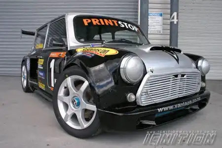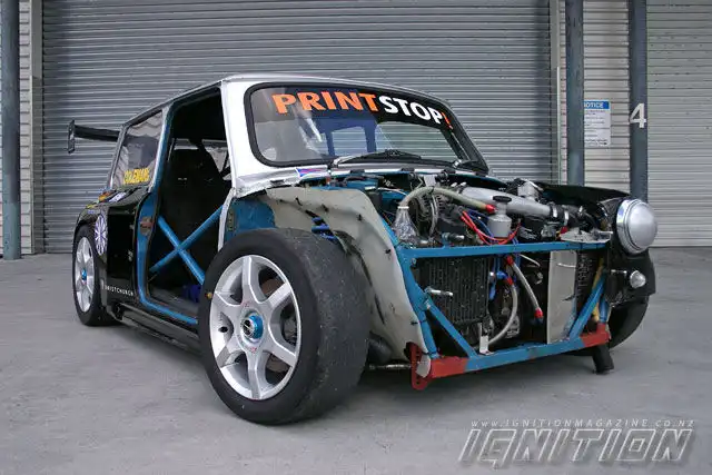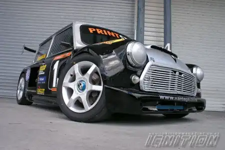 Тюнинг такого автомобиля, как Leyland Mini 1975 года выпуска, как и Восток – дело тонкое. Европейская малолитражка подготовлена для гоночных заездов с применением комплектующих от японских автомобилей. Первым делом было решено поработать над ходовой частью, которая была полностью заменена. Был установлен кузов рамной конструкции - преимущество такой ходовой заключается в том, что благодаря конструкции, кузов автомобиля стал крепче и прочнее, что, несомненно, является важным моментом для автомобиля такого почтенного возраста, который при этом разгоняется быстрее многих современных авто. В результате манипуляций с кузовом габариты автомобиля увеличились на 100 мм в ширину и длину, но, не смотря на это, вес автомобиля только уменьшился - ведь новый кузов целиком выполнен из стекловолокна. Красить это чудо, вместе с массивным задним антикрылом, благодаря которому автомобиль так уверено, держит дорогу на большой скорости, было решено двумя цветами – черным и серебряным.