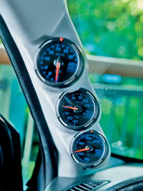 Когда экстерьер сочли идеально сбалансированным, следующим логичным шагом стало приведение в соответствующий вид внутреннего убранства авто. С этой целью Фам обратился в мастерскую San Jose Audio Dymanics, где в машину установили головное устройство-ресивер Alpine IVA-W200 double-DIN DVD/CD/MP3/WMA, снабженное также кабелем для подсоединения iPod. Подиум под три датчика, размещенный на стойке, покрасили в цвет заводского интерьера и снабдили его датчиками Defi серии Blue Racer: датчик температуры двигателя, давления турбины и температуры масла.