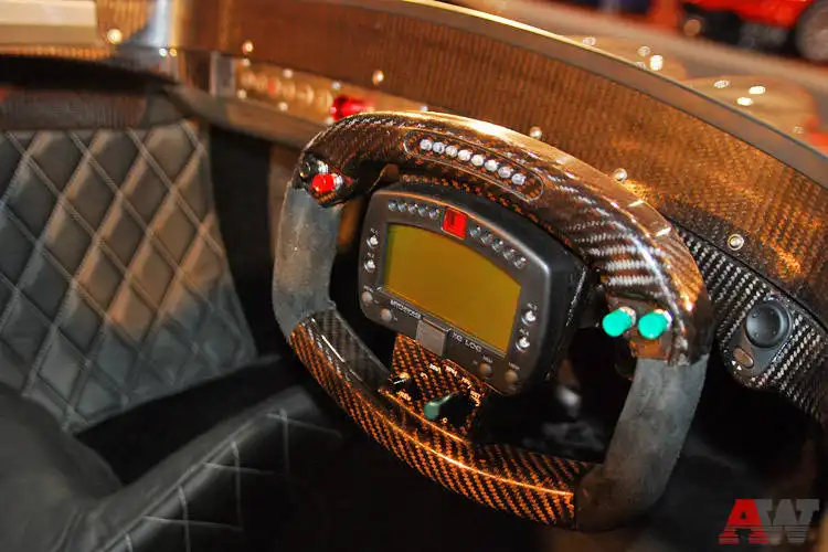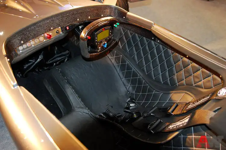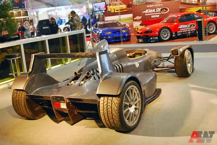 Так, от Caparo T1 буквально сносит крышу. У этого автомобиля её просто нет. Есть только 500 лошадиных сил мощности и 500 килограммов веса - гоночные болиды отдыхают. Этот суперкар впервые добрался до России и сразу же привлёк всеобщее внимание. Посетители с интересом разглядывали конструктивные особенности инженерного шедевра, имеющего мало общего с привычными серийными автомобилями. Хотя представители компании на стенде обещали даже официальную сервисную поддержку...
