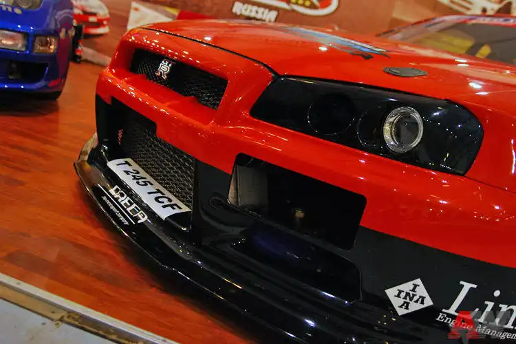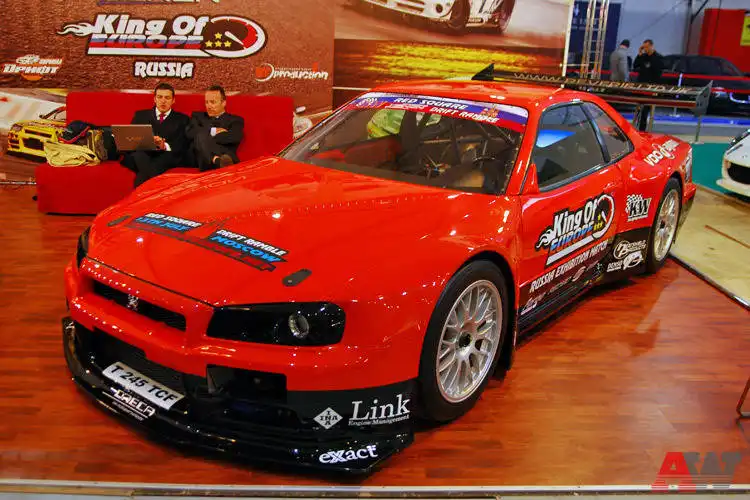 Ещё пару шагов - и перед нами Nissan GTR, король ринга. Нюрбургринга. GTR отпраздновал российскую премьеру - правда, неофициальную. Официальные дилеры принимать заказы на GTR даже не думают, а «серые» уже готовы вам его втридорога продать. Тюнинг-компании же продолжают демонстрировать легендарного предшественника суперновинки. Как вам «скай» с 12-цилиндровым мотором Mercedes и четырьмя турбинами?