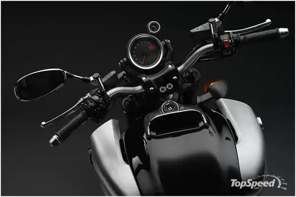 Дизайн VMAX претерпевал изменения, но в продажу поступит именно в таком виде, в каком вы видите его сейчас. Пятиступенчатая коробка передач, 200 «лошадок», 1,6-литровый двигатель – все это заставит зауважать 400-килограммовый байк даже самых прожженных скептиков.
