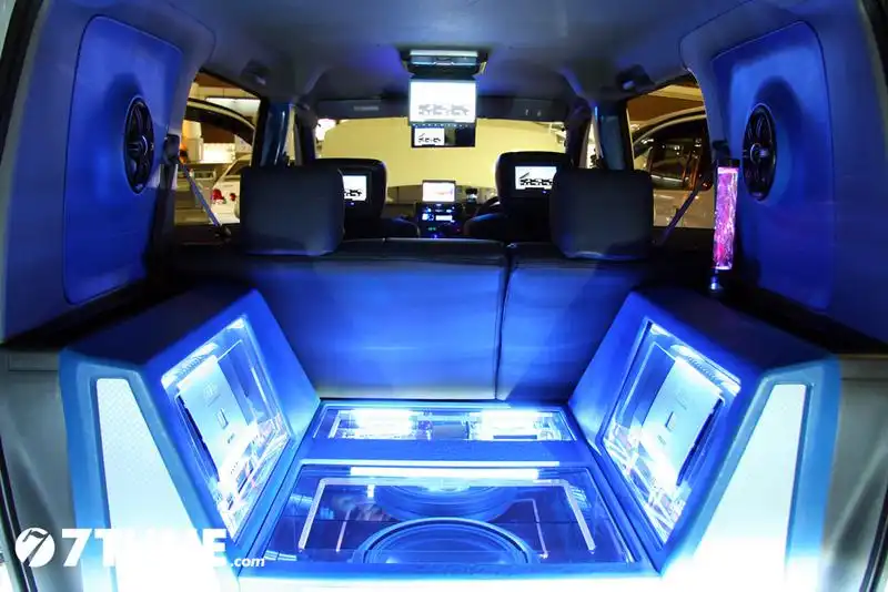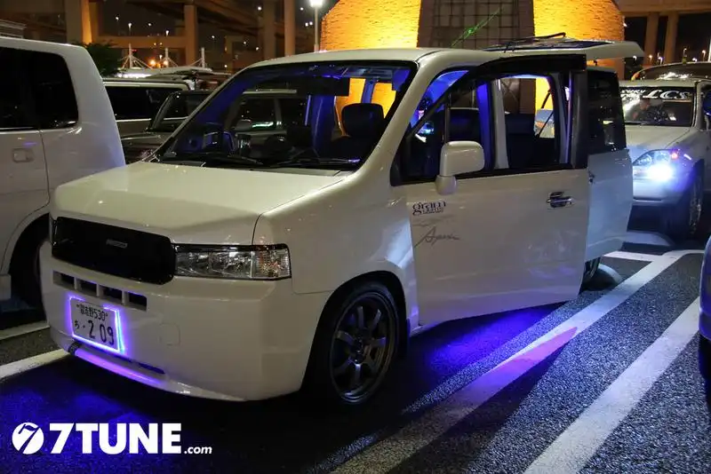 В Daikoku Futo находился один минивэн, который был полностью упакован последними разработками в области аудиотехники. Речь идет об автомобиле Honda Mobilio Spike, доработанным тюнинг-ателье Mugen. Такаси Янагибаси, владелец этой машины, был горд продемонстрировать 6 мониторов, усилители, сабвуферы, колонки и головное устройство — все фирмы Alpine. Судя по всему, штатный двигатель не справился бы с перевозкой дополнительных аудиоаксессуаров, поэтому ему на помощь пришел контроллер системы VTEC от A'pexi, воздушная камера Top Fuel и фильтр HKS Pod. На автомобиле установлены литые диски Rays Gram размером 17X7.5J, за которыми виднеются усиленные тормозные механизмы и вентилируемые диски от Dixcel.