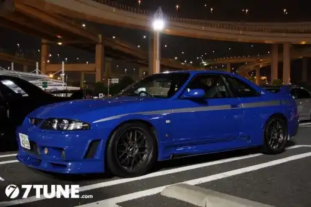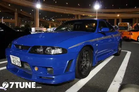 Звук, который издает во время взлета Боинг 747, привлек внимание журналиста к следующей модели. Вот только издавал его не самолет, а синий Nissan Skyline GT-R в кузове R33. Точнее, не совсем обычный BNR33. Владелец этого автомобиля, г-н Оота, уточнил, что машина представляет собой один из экземпляров ограниченной серии «LM Limited». С виду и не скажешь, что этот особо не выделяющийся внешне спорт-кар развивает мощность в 1 000 л.с., но для подтверждения этой цифры Оота не постеснялся открыть капот автомобиля, и все стало ясным. Двигатель RB26 в этой машине был «расточен» до объема в 2,7 литра, его дополняет длинный список доработок из каталога фирмы Tomei. Подает воздух в этого монстра турбина T51Kai, создающая давление в 2,5 Бара. Для удержания всей этой мощи на дороге предназначены диски BBS размером 19X10.5J с резиной Advan Sports, а также трансмиссия от Getrag. Ну а для остановки машины, способной разогнаться более чем до 340 км/час, установлены 6-поршневые тормоза AP Racing.