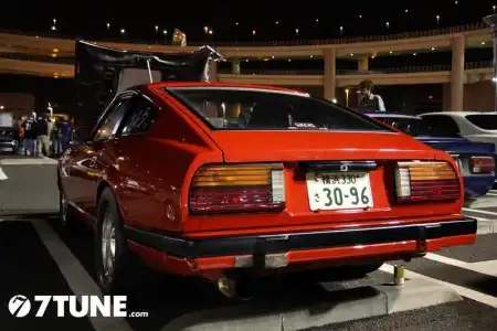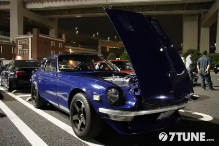 На парковке присутствовало и несколько поколений автомобилей Nissan серии Z. Представитель одного из них, красный Datsun 280Z, обладателем которого является г-н Катаока, до сих пор выступает на соревнованиях по дрэг-рэйсингу. Этот автомобиль оборудован 3,2-литровым двигателем L28, последовательной трансмиссией HKS, поршнями Wiseco и коленвалом с ходом 85 мм. Сзади на автомобиле стоят диски Nitto NT555s, на лобовом стекле красуется номер с соревнований, где этот 280Z демонстрирует время в районе 12 секунд.