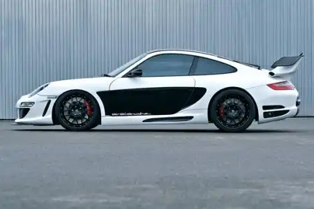 Вторая ступенька с успеху — скроённый в стиле Carrera GT бодикит, со знакомым фронтом, расширенными колёсными арками, швеллерами, мощным карбоновым анти-крылом хвостовой части и дюжиной воздушных «карманов» по всему периметру. Подчёркивается новизна и эксклюзивность за счёт специально лакировки — черной и белой.