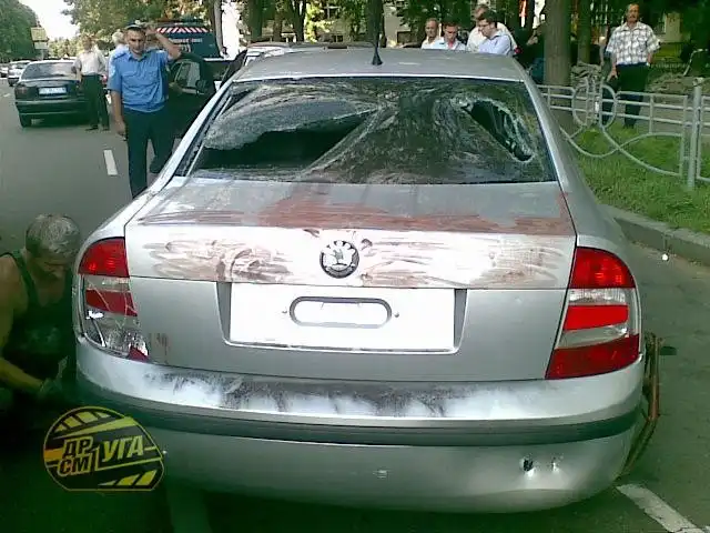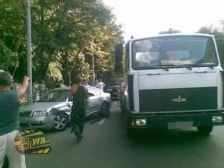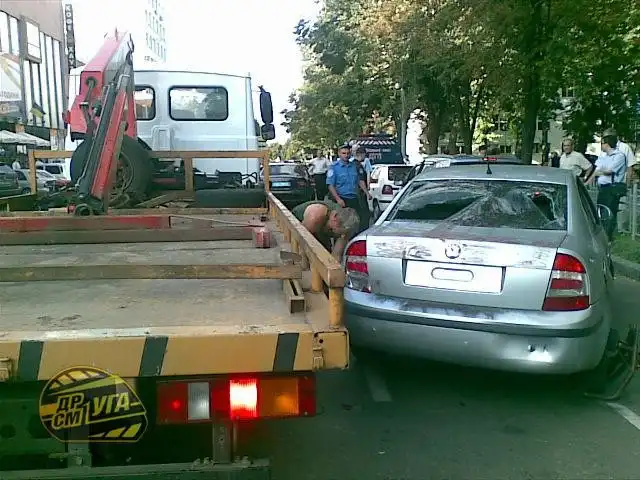 Всю информацию о произошедшем мотострингеру «Другої Смуги» рассказали очевидцы-пешеходы, а также водители проезжавшие мимо. По их словам, парень 24-х лет, двигаясь на большой скорости в направлении пл. Славы, на пешеходном переходе возле супермаркета «Сильпо» сбил женщину. После этого нарушитель попытался удрать с места происшествия, но ехавшие рядом водители Mercedes ML и Chevrolet Aveo не дали ему этого сделать. Сначала мужчина за рулем «мерса», чтобы остановить беглеца, ударил Skoda в водительскую дверку, после чего с правой стороны в него впилился «авео». Остановив таким образом «коня на скаку», Mercedes и Chevrolet тоже затормозили, а виновник ДТП начал выходить из салона. В этот момент на него и его транспортное средство напали мужчины с битами (по предварительным данным, эти же и еще водители-очевидцы). Кроме того, сам парень попал под самосуд женщин пожилого возраста, которые начали забрасывать его камнями… Если бы не подоспевшие к этому времени сотрудники милиции, самосуд для «лихача» мог бы закончиться тяжелыми последствиями.