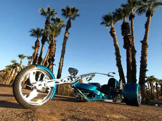 Колеса – диаметром 23 дюйма впереди и 18 дюймов сзади. Клиентка очень довольна тем, что получилось, и вовсю рассекает по Калифорнии на этом трайке, которому дали название "Мутные воды" (Troubled Waters). Phoenix Trike Works – семейное предприятие отца и сына Уиллиса и Джозефа Уилкенов (Willis and Joseph Wilcken). Уиллис Уилкен строит трайки с середины 1960-х годов, а на рубеже XX и XXI веков к нему присоединился и его сын. Их основная "фишка" – умение объединять лихую и щегольскую стилистику создаваемых аппаратов с удобством управления трайком.