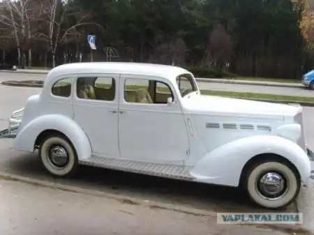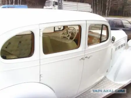 Это "Паккард" 1938 года.Благодаря мастерам и его владельцу он получил вторую жизнь.Однако кое-что пришлось изменить.Двигатель и ходовая часть от BMW.
