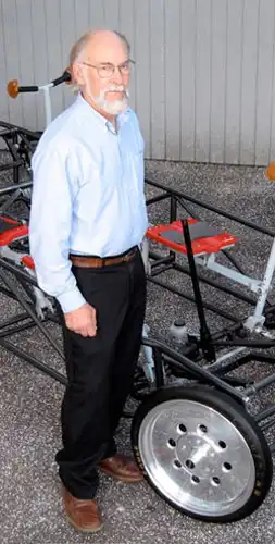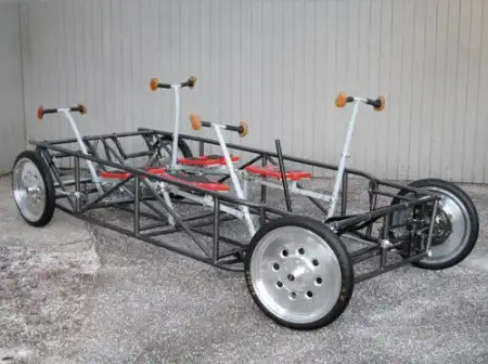 Гринвуд соединил привод гребного типа с двумя электромоторами постоянного тока в единую силовую установку на своем прототипе HumanCar Imagine. Литий-ионный аккумулятор питает электромоторы, пока основной источник крутящего момента (вернее – гребущего момента!) – пассажиры автомобиля, переводят дыхание. «Под ним буквально дымятся шины,» - восторженно заявляет Чарли. На испытаниях детище Гринвуда развило скорость около 60 километров в час только на мускульной тяге!