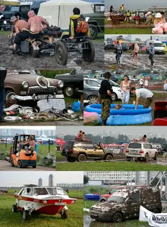 Кроме редких, а порой даже и уникальных автомобилей, Тушинский аэродром встретил участников и зрителей вполне себе обычной грязью.
