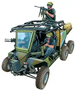Ударный багги FLYER R-12 сингапурского производства, применяется в США. Масса — 2,47 т, экипаж — 3 человека, двигатель — дизельный, 81 л. с., скорость — до 110 км/ч, запас хода — 500 км