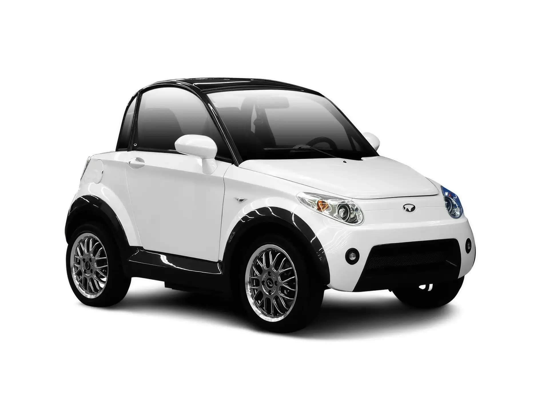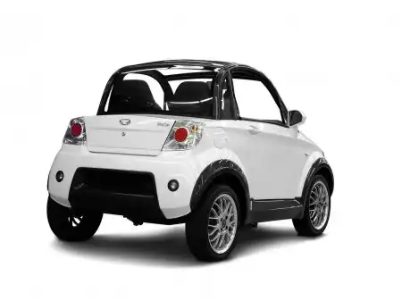 Стандартная комплектация включает в себя электростеклоподъемники и зеркала с электроприводом, аудиосистему с МР3 и радио, 14-дюймовые колеса и центральный замок. За дополнительную плату вы можете получить кожаный салон, подогрев сидений, 15-дюймовые диски, а также съемную (можно и не съемную) стеклянную крышу. Интересно отметить, что благодаря расположению электромотора и батарей под полом машины MyCar имеет два багажника – спереди и сзади.