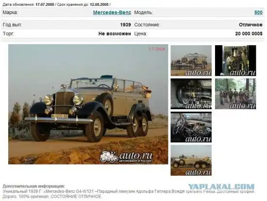 Именно столько просят на аукционе за парадный лимузин А. Гитлера!