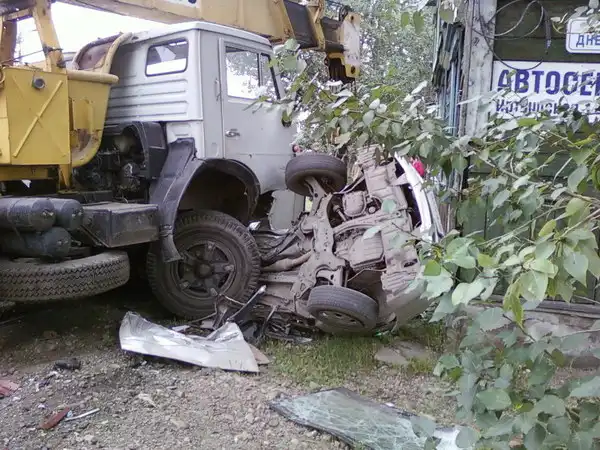 Кран снес тойоту