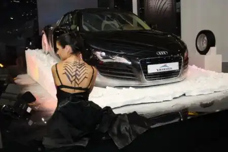 Самым плотским оказался стенд Alfa Romeo. Итальянцы, кажется, решили окончательно доказать всем, что их машины — самые сексуальные в мире. Ну, а доказывали с помощью шести жгучих go-go dancers, естественно, женского пола.