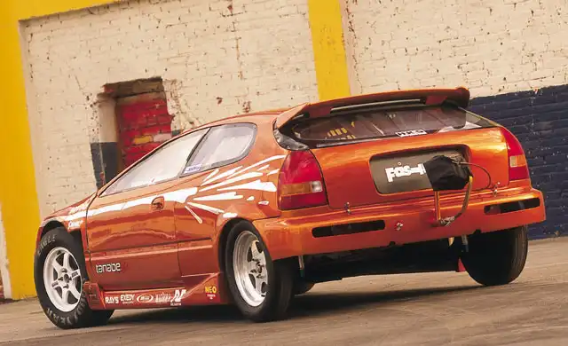 Только через неделю нам с Джоном удается поговорить с Коусуке в офисе компании, расположенном в Торренсе, причем на входе охрана раздевает нас практически до трусов. Насколько нам известно, это первый удачный проект переднеприводного Civic с двигателем от NSX. Остальные проекты не удалось довести до логического завершения, многие не пошли дальше зарисовок на доске. Когда мы спросили, была ли это первая попытка среди японских тюнеров, Коюсуке с энтузиазмом отвечает: «Да. Мы удивили всех тем, что добились стабильной работы за рекордно короткий промежуток времени. Это очень распространенная практика — взять маленький двигатель и заставить его быстро ехать, а мы решили проделать то же самое с двигателем побольше. Мы хотели сделать что-то уникальное». И это действительно уникально. Вопрос лишь в том, как вам удалось заставить двигатель от NSX работать на базе Civic? «Это было очень сложно, поскольку трансмиссия NSX намного длиннее, чем у Civic. Нам не хотелось варить специальный каркас, и мы решили использовать стандартное шасси настолько, насколько было возможно. Самой большой проблемой было соединение двигателя с трансмиссией, особенно в области приводных валов, а именно угол посадки оных. То есть нашей основной задачей на данный момент является разработка подходящих приводов».